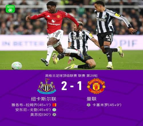 北京時間3月5日英格蘭足球頂級聯賽 聯賽 第29輪,紐卡斯爾聯主場對陣曼聯。紐卡斯爾聯安東尼-戈登破門,奧蘇拉破門。曼聯卡塞米羅破門。最終比分紐卡斯爾聯 2-1 曼聯。