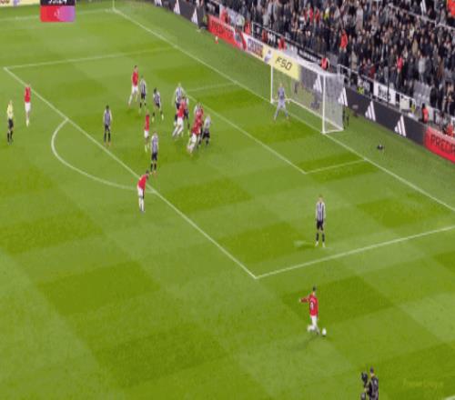 傷停補時階段,紐卡球員拉姆齊假摔吃到第二張黃牌被罰下,但隨后B費禁區內送點,戈登穩穩主罰命中,幫助喜鵲軍團取得了1-0的領先,半場結束之前,B費將功補過,右側定位球開到門前,卡塞米羅頭球建功,曼聯將比分追至1平。