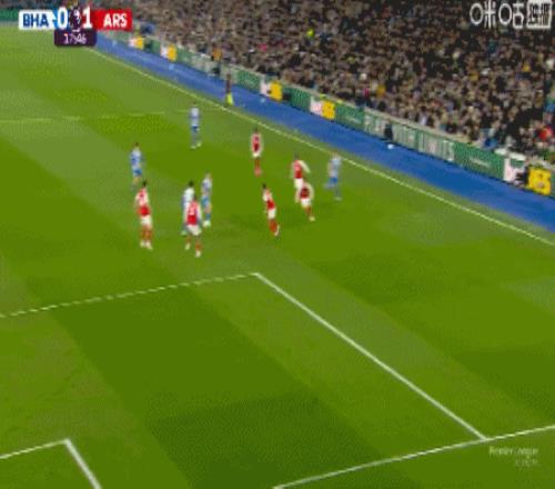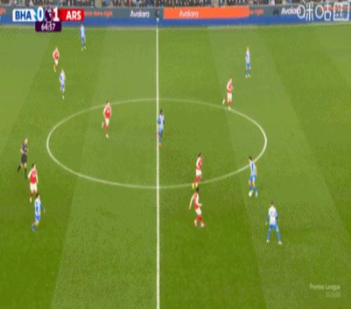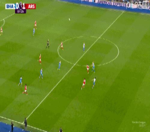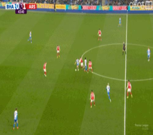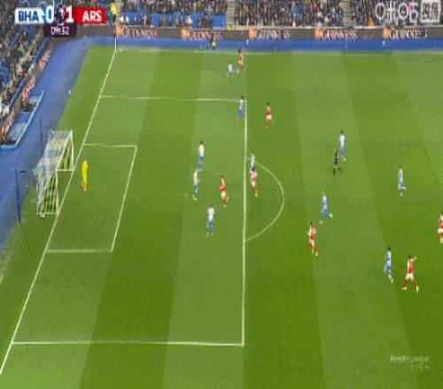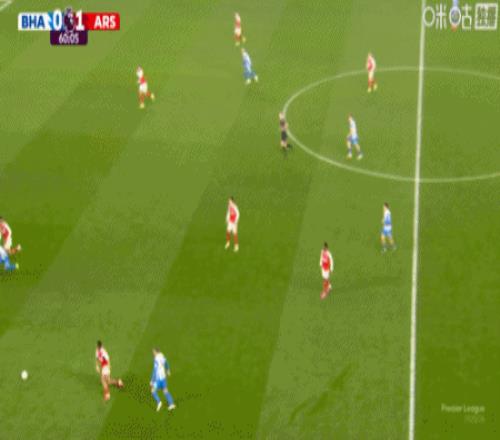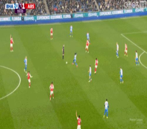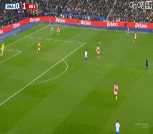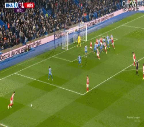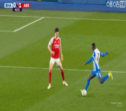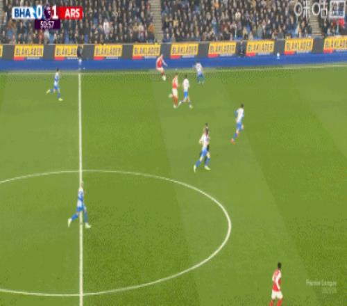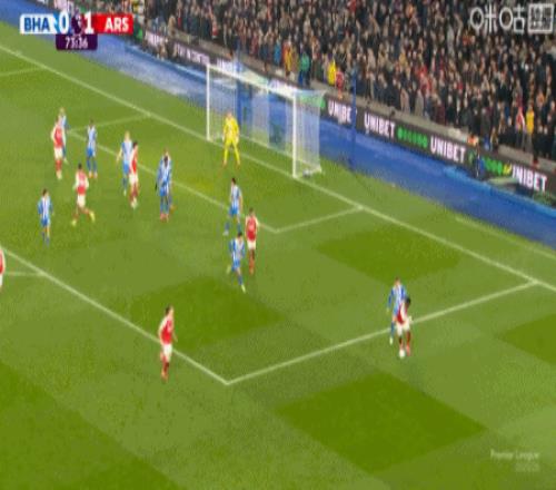 第9分鐘,薩卡右路內切擊中巴萊巴稍稍變線破門,阿森納1-0布萊頓