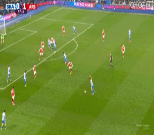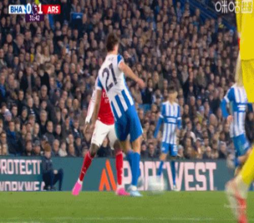 第25分鐘,布萊頓快發任意球失誤,皮球直接擊中自家隊友