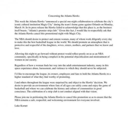 今天,馬刺球員科內(nèi)特在他的社交媒體呼吁,讓老鷹取消他們剛宣布的主題日“魔術(shù)之夜”活動,稱該活動對女性不尊重,因為Magic City是當(dāng)?shù)匾患曳?wù)名流的脫衣舞俱樂部。