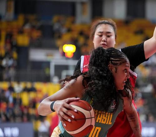 劉禹彤在比賽中和巴西中鋒卡多佐對抗,沒有讓對手占到便宜??ǘ嘧羰?024年WNBA探花秀,身高2米04。她在國際賽場也打出了名堂,在2024年奪得了美洲杯MVP。