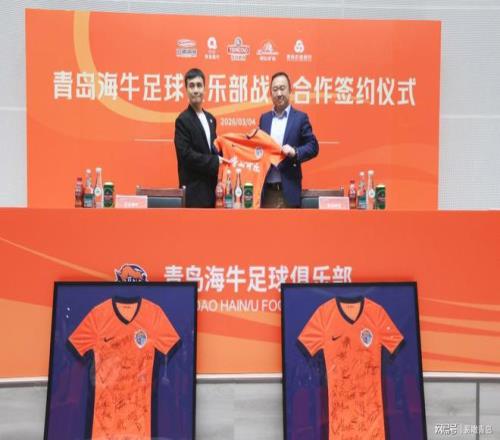 青島啤酒旗下嶗山啤酒、嶗山可樂攜手青島海牛出征中超,共赴熱血征程。青島啤酒將成為球隊新賽季的官方戰略合作伙伴,嶗山啤酒和嶗山可樂的標志將分別出現在海牛隊的新賽季主客場球衣衣袖和胸前,陪伴球隊征戰2026賽季中超聯賽。