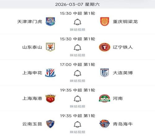 3,3月7日也就是本周六,中超第一輪還將進行5場比賽。
