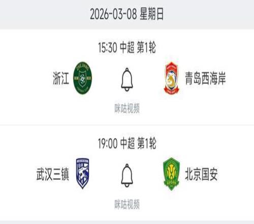 3月8日也就是本周日,將進行2輪中超比賽。