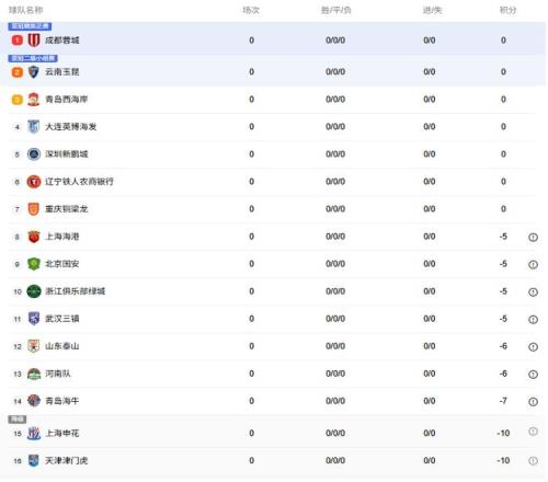 與以往賽季相比,新賽季中超的最大不同在于9支球隊(duì)負(fù)分開局。上海申花、天津津門虎均被扣10分,青島海牛被扣7分,山東泰山、河南均被扣6分,上海海港、北京國安、浙江、武漢三鎮(zhèn)均被扣5分。多支傳統(tǒng)強(qiáng)隊(duì)未戰(zhàn)先背“積分包袱”。