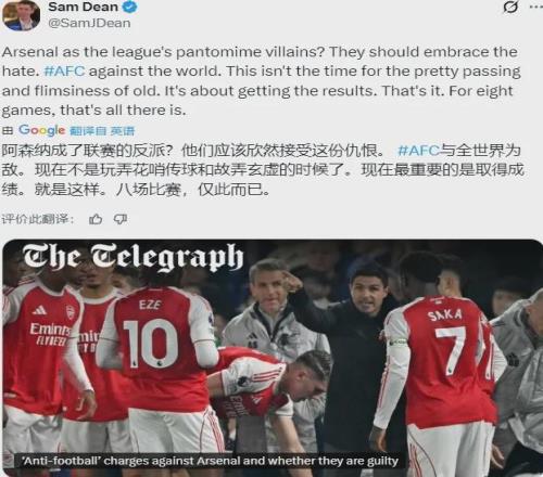 其實這個問題我認為必須說一說。不僅是許策勒,阿森納現在有點“英超公敵”的意思,除了槍迷,可能其他對手、媒體、評論員等等都不希望這支球隊奪冠,而且幾乎是排山倒海一面倒的抨擊這支球隊的球風,BBC這樣嚴肅的媒體居然寫出了“用丑陋來形容這支阿森納簡直是侮辱丑陋”這樣的文章,說實話已經有點扭曲……