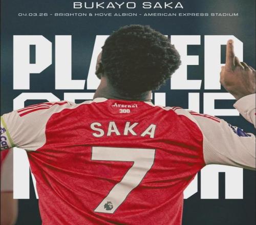 官方:薩卡被阿森納球迷票選為了本場比賽最佳球員!