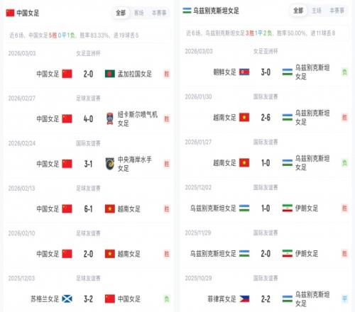 中國女足是本屆賽事的衛冕冠軍,9次奪得亞洲杯冠軍歷史第一。目前中國女足排名FIFA第17,烏茲別克斯坦女足排名FIFA第49。小組賽首輪,中國女足2-0擊敗孟加拉國女足,烏茲別克斯坦女足0-3不敵朝鮮女足。