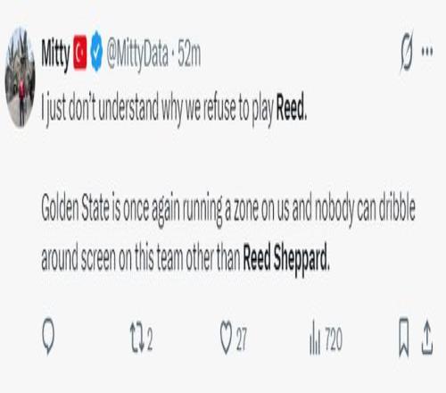 火箭記者Mitty:我就是不明白為什么球隊拒絕讓謝潑德先發,勇士對我們的緊逼防守除了謝潑德外根本沒人可以突破他們的防線,他是我們需要的控球手。