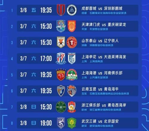 2026賽季中國(guó)足球超級(jí)聯(lián)賽第一輪賽程。 來(lái)源:CSL中超聯(lián)賽微博