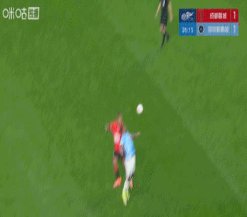 第15分鐘,姜至鵬揚肘擊打到身后韋林頓·席爾瓦面部,王迪出示黃牌,查看VAR后改判紅牌↓