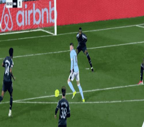 第94分鐘,皇馬發動最后的進攻,阿諾德的傳中被擋出,巴爾韋德的射門打在防守球員的身上產生折射,皮球直掛死角。