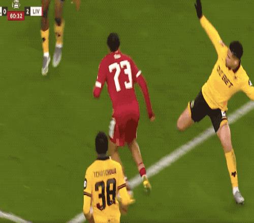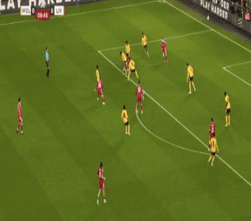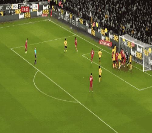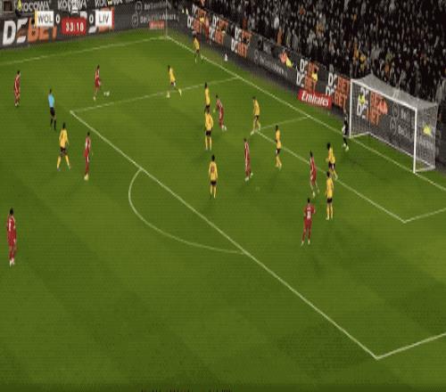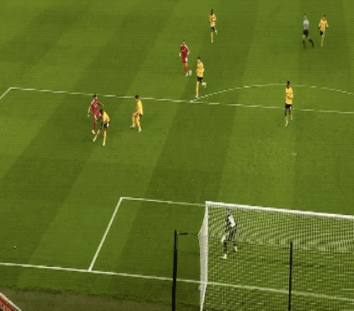 第53分鐘,羅伯遜的傳球正好越過狼隊的防線,薩拉赫包抄破門,裁判第一時間十一越位在先,VAR介入,進球有效,薩拉赫連續兩場比賽破門得分。