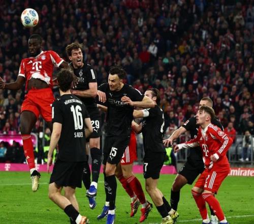本場比賽拜仁排出了4231陣型。尼古拉-雅克松頂在最前面。卡爾、穆西亞拉和路易斯-迪亞斯的進(jìn)攻組合聯(lián)袂出擊?;紫:透窭状目ńM成雙后腰。萊默爾、于帕梅卡諾、金玟哉和比朔夫4后衛(wèi)首發(fā)出戰(zhàn)。諾伊爾擔(dān)任首發(fā)門將。格納布里、奧利塞和帕夫洛維奇坐在替補(bǔ)席待命。凱恩因傷缺陣。