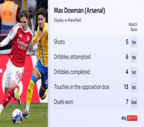 據(jù)天空體育統(tǒng)計,道曼本場比賽多項數(shù)據(jù)領(lǐng)跑,只可惜未能取得一線隊首球。