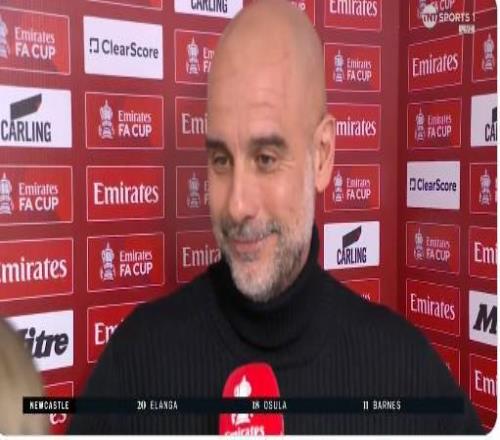 足總杯1/8決賽,曼城將客場(chǎng)對(duì)陣紐卡斯?fàn)枺侵鲙浌系蠆W拉賽前接受了TNT體育的采訪。