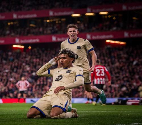 此役客場對陣畢爾巴鄂競技,首發出戰的亞馬爾在比賽第68分鐘破門,打入全場唯一進球,幫助巴薩1-0取勝。