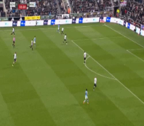 第18分鐘,托納利中路直塞,巴恩斯反越位,左路插上單刀兜射得手,紐卡斯爾打破僵局,1-0!