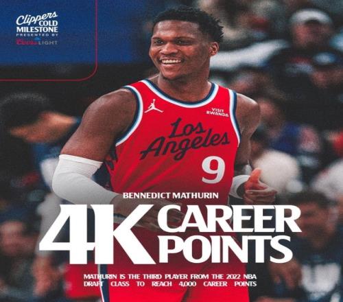 目前,馬瑟林常規(guī)賽生涯總得分突破4000,2022屆第三人,僅次于班凱羅(5577分)和杰倫·威廉姆斯(4356分)。