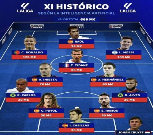 最近德國轉會市場西班牙站整理了“西甲歷史最佳陣容”。名單把前場的C羅、勞爾、梅西直接擺在一起,中場則是齊達內、哈維、伊涅斯塔這種控球與創(chuàng)造力拉滿的組合。與此同時,迪斯蒂法諾、普斯卡什、羅納爾迪尼奧并不在名單里。可仔細看陣容名單,兩名邊后衛(wèi)都以壓上見長,而中場三人偏組織與控球,這套陣容真要踢強強對話,進攻會有多夸張,防守會不會被反擊一打就穿?(數(shù)據(jù)截至2026年2月24日)