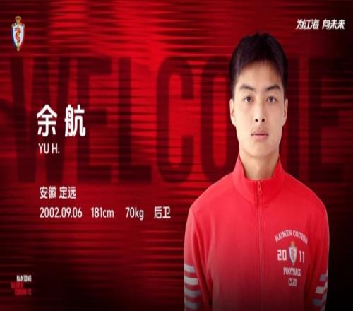 經與球員本人協商一致,余航正式加盟南通海門珂締緣足球俱樂部。余航,出生于2002年9月6日,身高181cm,體重70公斤,司職后衛,安徽定遠人。新賽季余航將身披23號戰袍隨隊征戰中乙聯賽,歡迎他的到來!