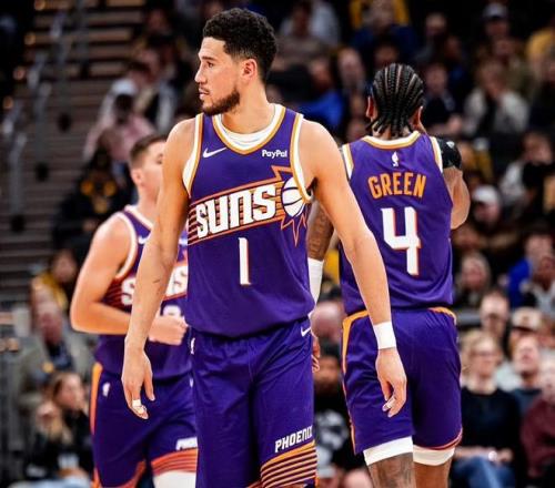 首節比賽上來,步行者隊內外開花將炮轟進行到底,布克見狀拉滿進攻打滿首節,連投帶罰獨砍15分,雙方打了個平手。第二節,格林續上火力,布克也延續著火熱手感,太陽隊轟出一波小高潮占據主動權。到了第三節,內姆哈德和祖巴茨都不打,布克卻不講武德,單節爆砍19分;末節決戰,布克收斂鋒芒,格林卻火上澆油,單節砍下17分收割比賽。這就是雙槍的好處,兄弟連心其利斷金,輪番接管比賽賞心悅目!