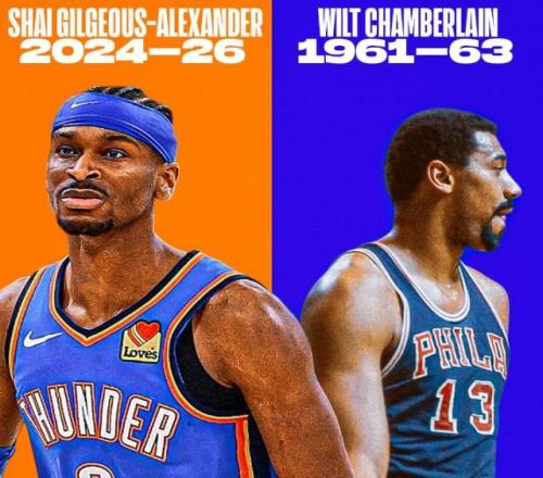 北京時間3月13日,在雷霆主場迎戰凱爾特人一戰,雷霆球星亞歷山大在第三節中段憑借一記標志性的中投命中,本場比賽得分來到21分,從而達成連續127場比賽得分20+,一舉打破張伯倫連續126場得分20+的紀錄,成為NBA歷史連續砍20+第一人。