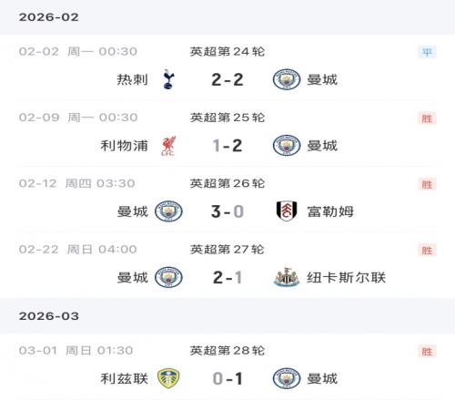 瓜迪奧拉(曼城):5戰4勝1平