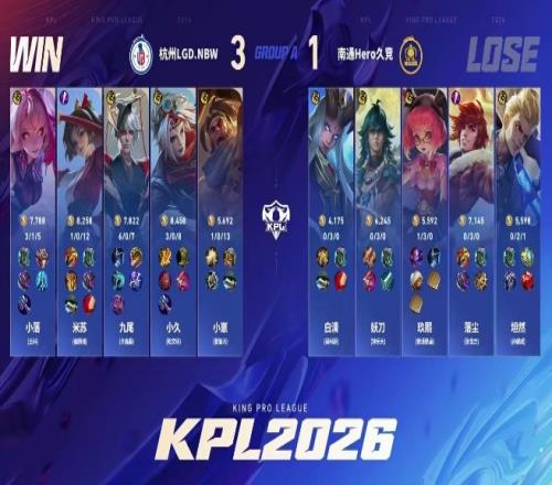 體育播報3月13日宣 2026KPL春季賽本場比賽是由南通Hero久競對陣到杭州LGD.NBW!