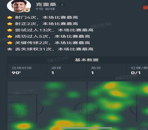 而澤卡看起來并沒有給對手的球門造成太大的威脅。但12次爭頂,7次成功拿下第一點都是全場最多。當阿爾瓦羅找澤卡,這條“運輸線”得到保障,也就給了克雷桑爆發的機會。雖然他是全場丟失球權最多的球員,但他同樣是全場過人次數、關鍵傳球次數最多的球員。特別是在下半場比賽,克雷桑在場上的發揮,完全是獨一檔的存在。