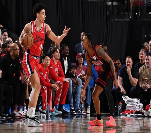 本場比賽中,快船的先發側翼新秀科比-桑德斯(Kobe Sanders)的表現還是非常出色的。桑德斯全場出場25分54秒,投籃8中4,三分線外7中3,得到了11分6籃板3助攻1搶斷的數據,還有1次失誤和3次犯規,正負值為+2。桑德斯在進攻端其實也沒有得到什么太大的出手機會,但是他還是展現出了自己不俗的投射能力并且命中了幾記三分,得到了一些分數。除此之外,桑德斯也展現出了一定的傳球能力和策應能力,他在進攻端的功能還是比較全面的。桑德斯不僅在進攻端表現不錯,他在防守端也是能夠利用自己的積極性和活力給對手制造一些麻煩的。總體來看,桑德斯在本場比賽中的表現算得上是非常穩定,他在攻防兩端都發揮出了自己的價值并且為球隊的勝利做出了自己的貢獻。
