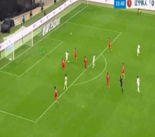 第34分鐘,熱菲尼奧挑傳,姆本扎挑過出擊的姚浩洋,盧康右腳解圍。