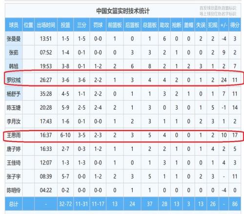 俗話說,數(shù)據(jù)不會說謊,從羅欣棫、王思雨的個人數(shù)據(jù),正負值,就充分說明,她們的表現(xiàn)對球隊的幫助巨大,是球隊的贏球的最大功臣。