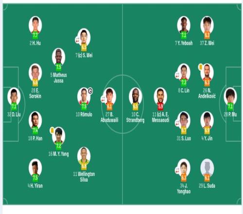 成都蓉城替補:1-蹇韜、15-冉偉楓、3-亞歷斯祖、17-王東升、19-董巖鋒、22-李揚、23-廖力生、29-木塔力甫、39-甘超、48-李漠雨。