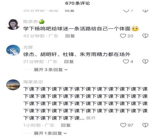 本場比賽杜鋒再度讓球迷感到絕望。賽前宏遠(yuǎn)官宣崔永熙復(fù)出,本賽季首次全員出戰(zhàn),結(jié)果上來球隊就被打了一個26-11。杜鋒在用人上、戰(zhàn)術(shù)上、指揮上都徹底被遼籃的烏戈壓制,加上歷年來杜鋒的各種離譜操作,廣東球迷對杜鋒的不滿終于達(dá)到了頂點。賽后杜鋒的社交媒體評論區(qū)一片“下課”呼聲。有球迷建議杜鋒和朱芳雨一起去找李春江釣魚,有球迷建議杜鋒學(xué)一下楊鳴,“給球迷一條活路,給自己一個體面”。也有球迷覺得杜鋒最好是專心從政,球隊還是交給合適的人接手好了。無論如何,杜鋒的宏遠(yuǎn)教練生涯都到了最危險的地步,不知道陳老板還能忍他到什么時候。