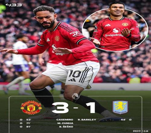 曼聯主場3-1戰勝阿斯頓維拉,穩居第3并擴大領先優勢。大馬丁屢次做出神撲,B費助攻卡塞米羅頭球打破僵局,巴克利扳平比分,B費再次助攻,庫尼亞破門,謝什科替補鎖定勝局。