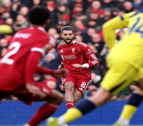 面對最近3次交手,全部敗在自己腳下的熱刺,利物浦在主場沿用了4231的陣型,首發門將阿利森、羅伯遜、范戴克、喬戈麥斯和索博斯洛伊構筑后防,麥卡利斯特和赫拉芬貝赫搭檔雙后腰,恩古莫哈、維爾茨和弗林蓬坐鎮中場,單箭頭則是加克波。