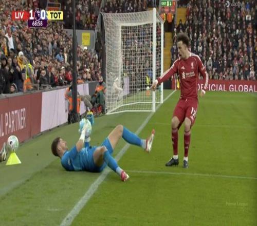 在利物浦vs熱刺的第67分鐘,出現(xiàn)了令人有些費(fèi)解的一幕。維卡里奧抱球滑出底線,裁判卻忽略了這一明顯的角球。