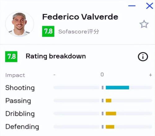 本場比賽,巴爾韋德在第44分鐘打進一球,幫助皇馬擴大領先優勢。但進球只是他全場出色發揮的一部分。
