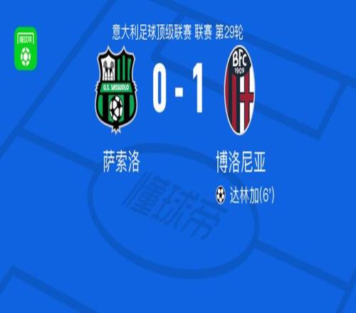 北京時間3月15日意大利足球頂級聯賽第29輪,薩索洛主場迎戰博洛尼亞。比賽中博洛尼亞球員達林加打入制勝進球,最終薩索洛0-1不敵博洛尼亞。