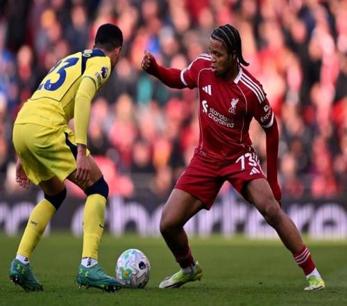 英超第30輪,利物浦主場對陣熱刺,上半場戰(zhàn)罷利物浦1-0領(lǐng)先,利物浦17歲邊鋒恩古莫哈上半場完成6次過人,本賽季英超只有6名球員全場成功過人次數(shù)比他更多。