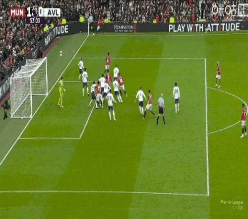 聯(lián)賽第7球!比賽第53分鐘,B費(fèi)角球助攻卡塞米羅頭槌打破僵局,曼聯(lián)1比0維拉!