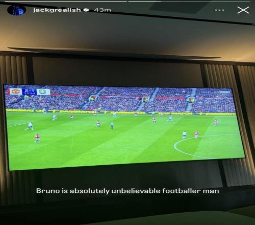 現租借效力于埃弗頓的格拉利什,在社媒上曬出了他觀看本場比賽的照片并配文:布魯諾絕對是一位不可思議的球員。