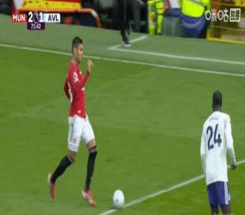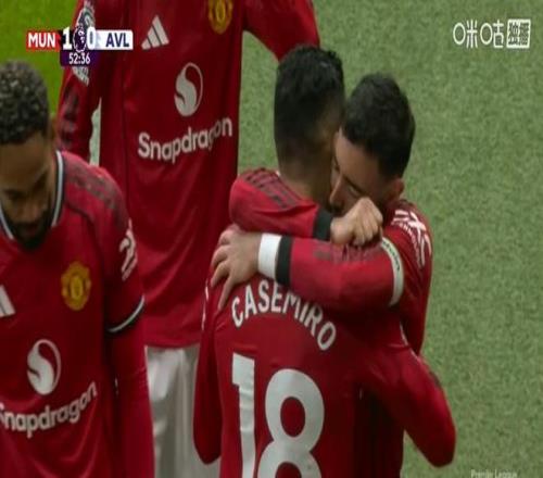 第53分鐘,姆伯莫禁區內左側小角度打門被大馬丁飛身撲出底線,B費前場右側開出角球,卡塞米羅迷蹤步甩開防守,閃到前點甩頭攻門將球頂進維拉大門,曼聯主場1-0取得領先。這是胖虎本賽季第七粒英超聯賽進球。