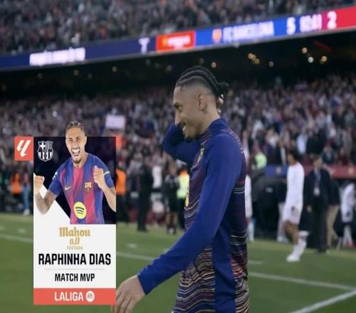 西甲第28輪,巴塞羅那主場5-2擊敗塞維利亞,此役上演帽子戲法的巴薩前鋒拉菲尼亞當選西甲官方全場最佳球員。