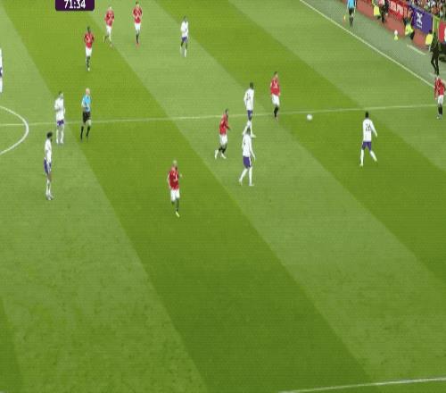 就在比賽似乎要進入拉鋸戰時,曼聯的核心人物再次站了出來。第71分鐘,達洛特從后場推進策動反擊,B費在左路送出一記手術刀直塞,庫尼亞反越位成功形成單刀。面對馬丁內斯,他冷靜推射破門,曼聯2-1再次領先。