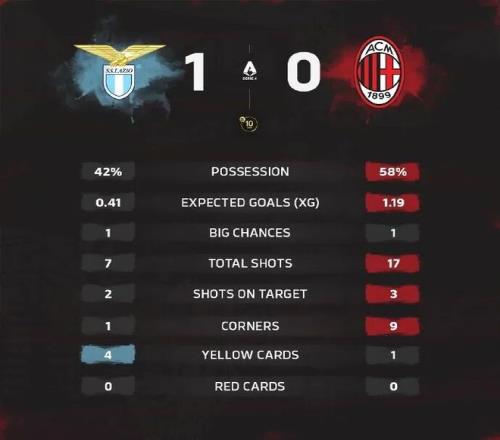 北京時間3:45,意甲第29輪拉齊奧vsAC米蘭。上半場,伊薩克森、泰勒先后中橫梁,馬魯西奇助攻伊薩克森破門;丹尼爾·馬爾蒂尼錯失良機。下半場,埃斯圖皮尼安險些烏龍;阿特卡梅進球被吹;薩里讀秒抗議補時時長吃到紅牌。最終,米蘭0-1拉齊奧。