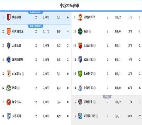 都料到2026賽季中超的爭冠和保級形勢將大亂,沒想到會亂成這個地步。第二輪戰罷,中超積分榜亂成糨糊,各隊喜歡成雙結對。更有趣的是,以往中規中矩的山東泰山,居然也玩起了煙霧彈?而最大的爭冠大黑馬也浮出水面。