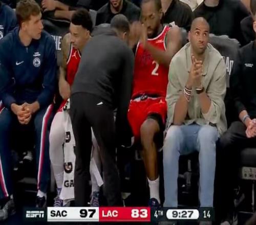 萊昂納德末節扭傷腳踝下場檢查后提前退賽。